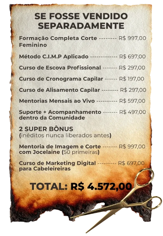 Com mais de 15 anos de experiência, criou o Método Jocelaine Ribeiro, que transforma cabeleireiras comuns em Rainhas dos Cortes Avançados — profissionais que conquistam clientes que valorizam e pagam o que você realmente merece.
